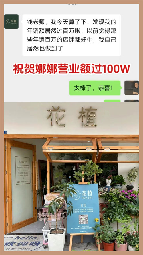 答复:除了上课期间的学习,毕业后开店的时候老师会帮助花店选址+陈列设计+经营指导,这是终生的服务,只有把学生培养成功了,老师才有成就感!另外学校还有数百人的学生微信群,里面有很多成功的师兄师姐,大家一起探讨学习。